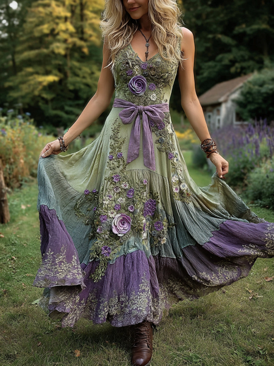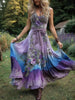 Retro vidéki virágművészet nyomtatott vintage v-nyak ujjatlan kényelmes maxi ruha
