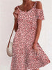 Női retro virágos nyomtatás laza off-váll mini ruha