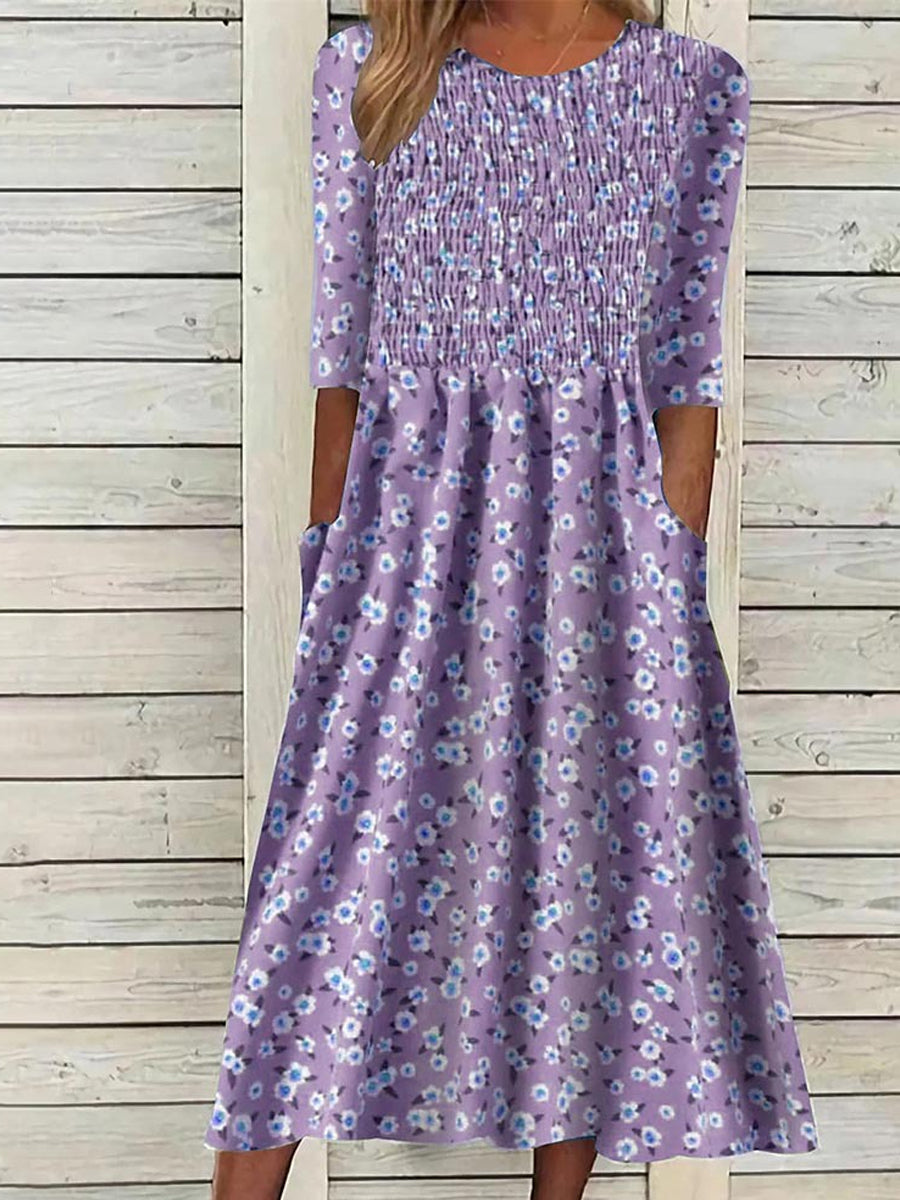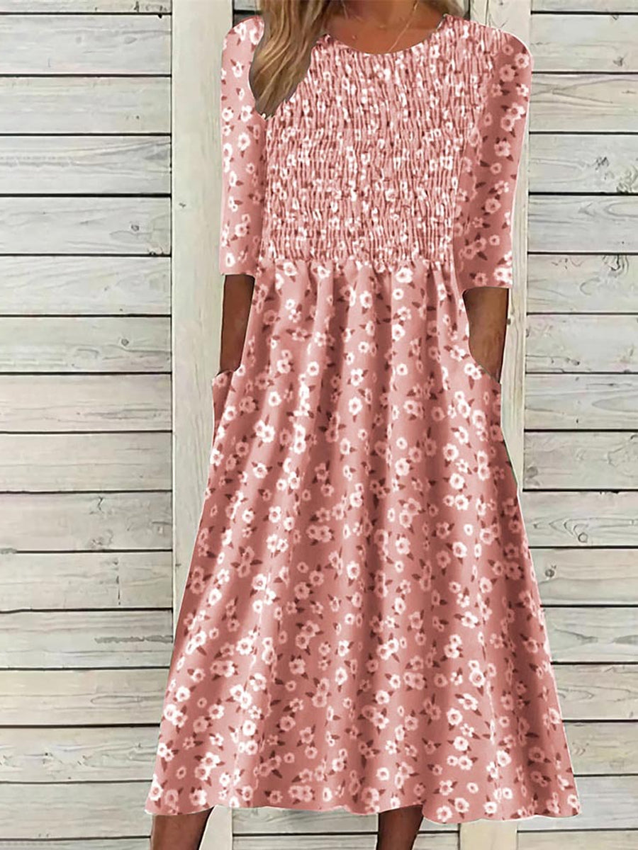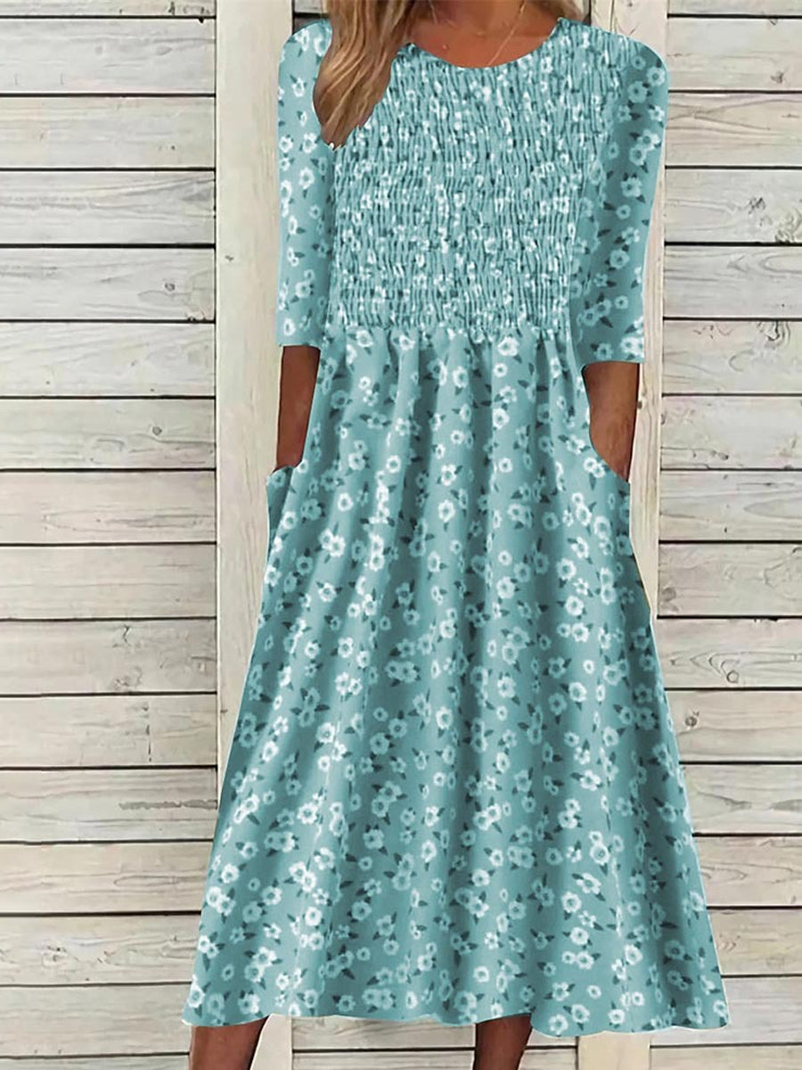 Női retro színes virágos nyomtatás derék rövid ujjú ruha