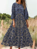 Retro boho art print vintage elegáns kerek nyak pamut hosszú ujjú midi ruha