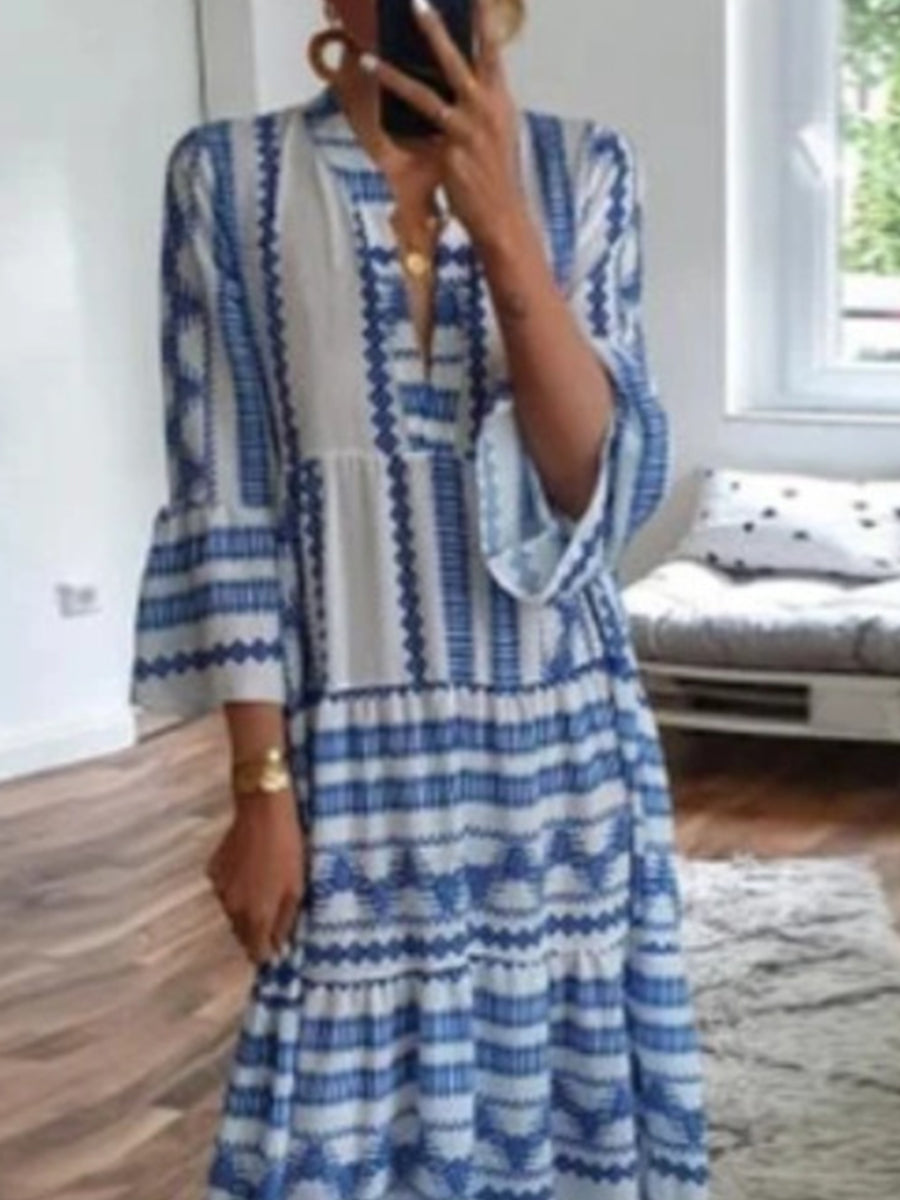 Női retro geometriai nyomtatás maxi szoknya boho stílus szoknya