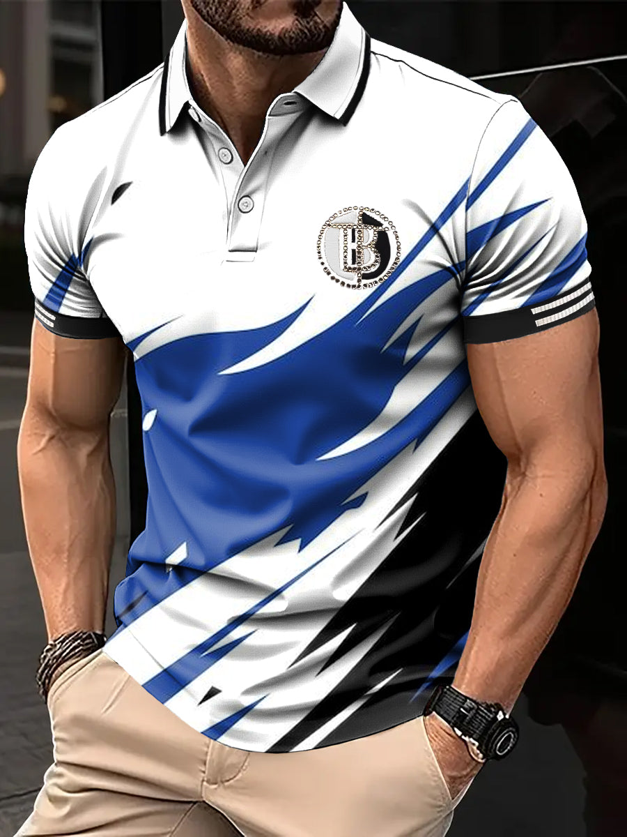 Férfi retro absztrakt geometriai patchwork art nyomtatás alkalmi üzleti póló