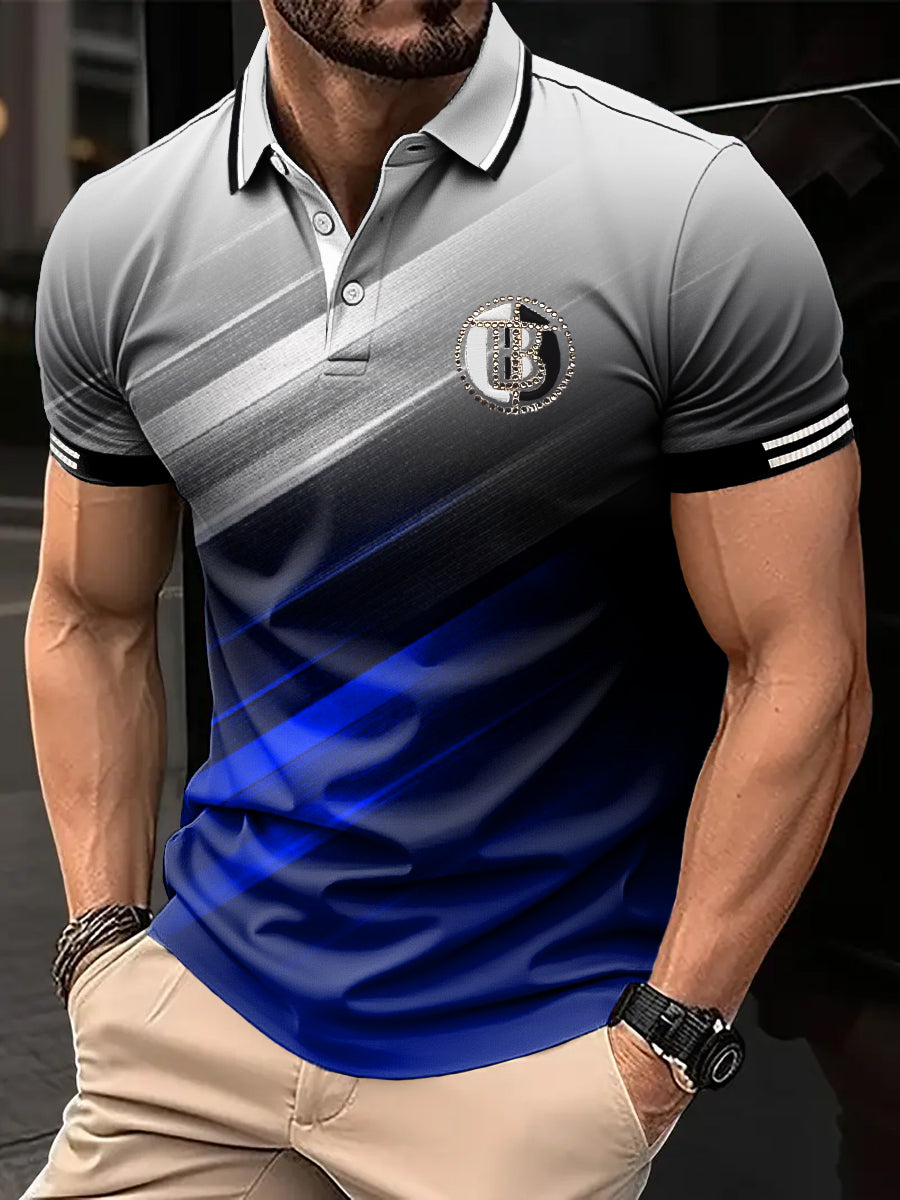 Férfi retro gradient line splicing art nyomtatás alkalmi üzleti póló