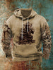 Férfi retro western nyomtatás alkalmi csuklyás pulóver