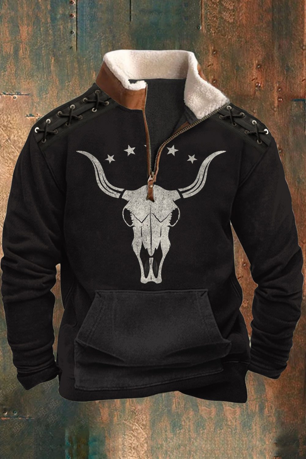Férfi vintage divatos nyugati cowboy stílus 3d nyomtatás bunda gallér cipzár flush kültéri pulóver