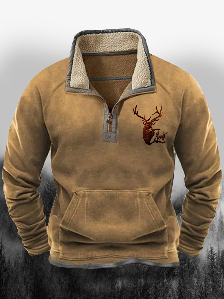 Férfi west cowboy elk vadászat nyomtatás lapel molyhos gallér cipzár alkalmi laza pulóver