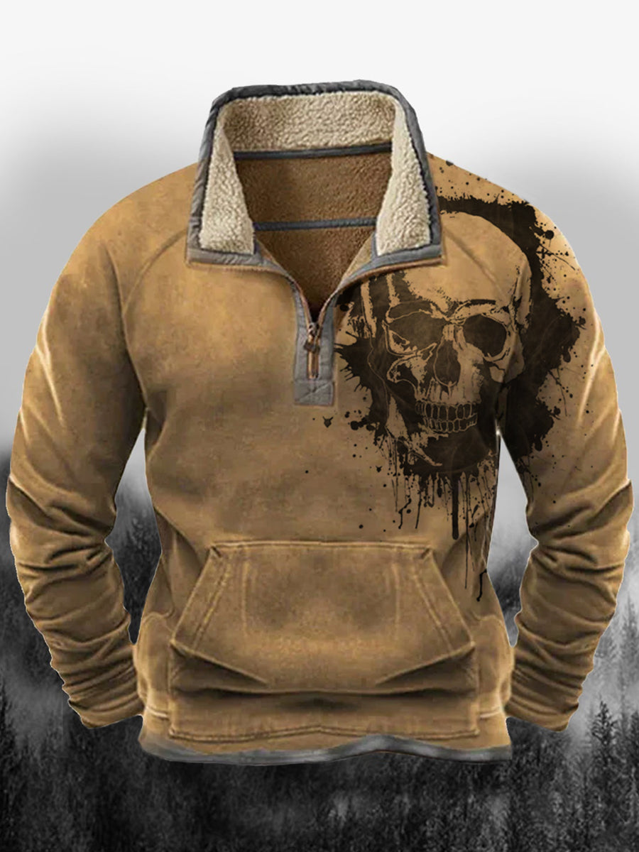 Férfi west cowboy punk graffiti nyomtatás lapel molyhos gallér cipzár alkalmi laza pulóver