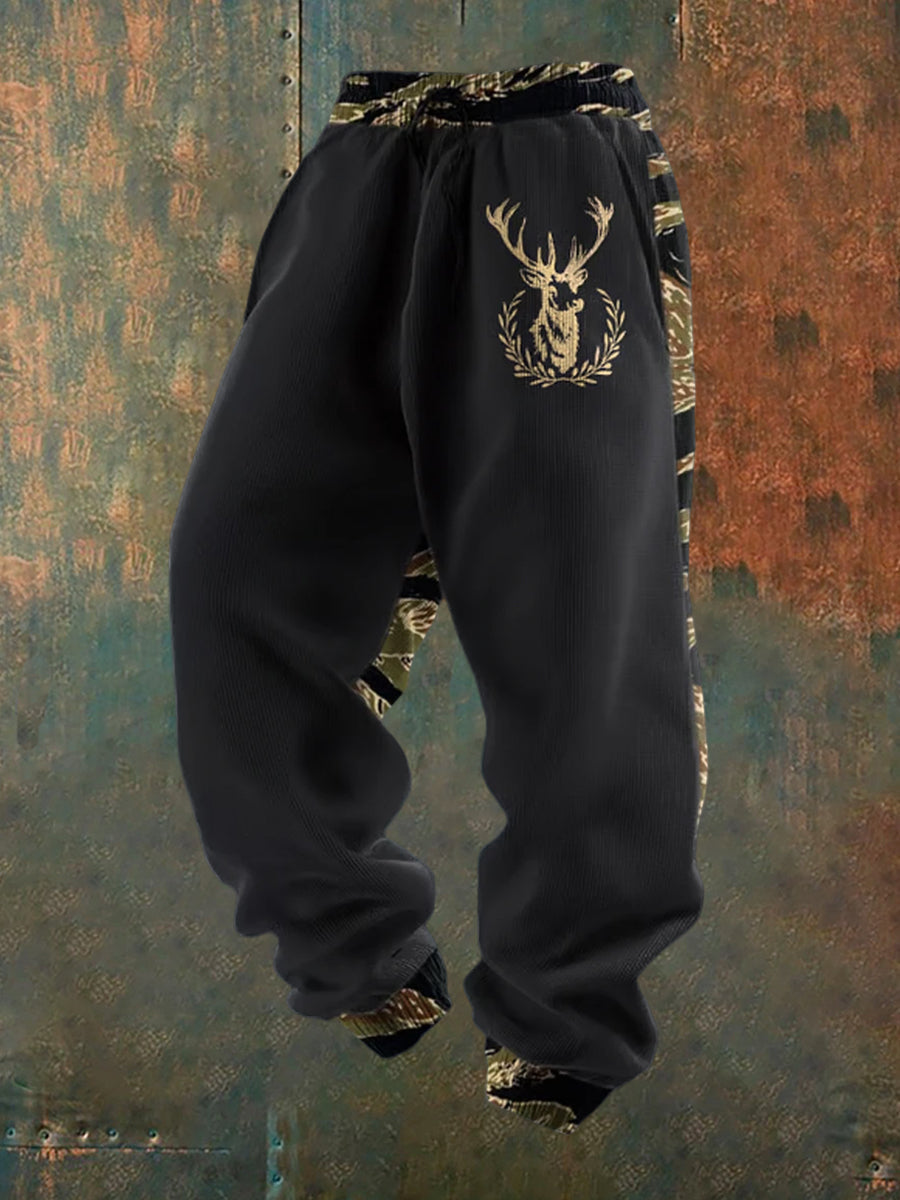 Férfi retro western nyomtatás laza alkalmi nadrág