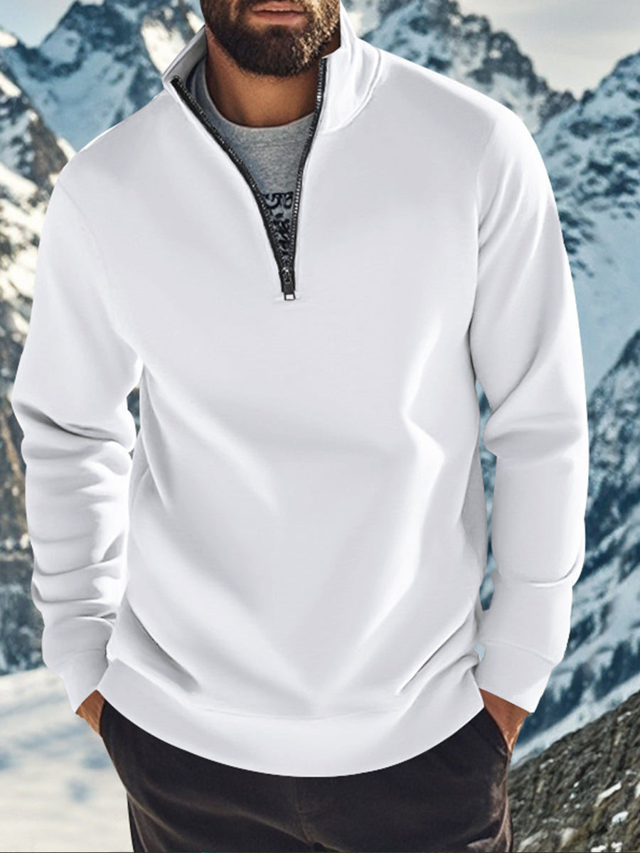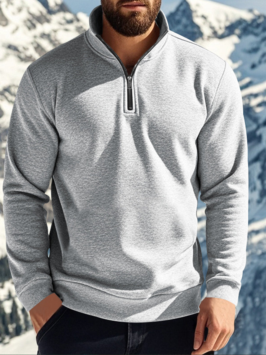 Férfi retro üzleti stílus cipzáras állvány gallér plüss pulóver