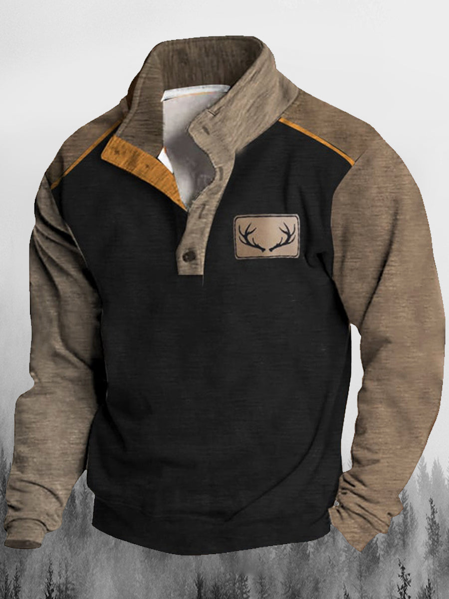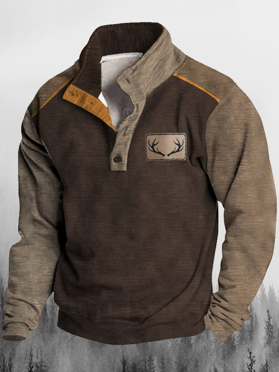 Férfi nyugati agancs jel nyomtatás állvány nyakörv gomb flush kültéri pulóver