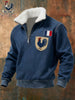 Férfi vintage francia zászló ricard alkalmi zip-up fur collar pulóver