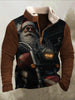 Férfi vintage motorkerékpár santa art 3d nyomtatás retro bunda nyakörv cipzár flush kültéri pulóver