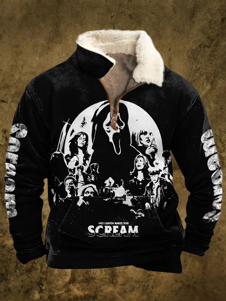 Vintage punk sikoly nyomtatott lapel molyhos gallér cipzár alkalmi megvastagodott pulóver