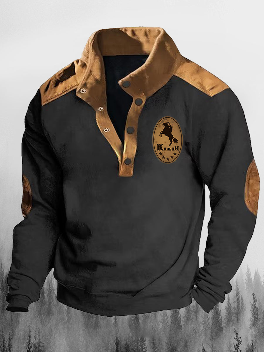 West cowboy nyomtatott lapel állvány gallér lapel gomb alkalmi laza pulóver