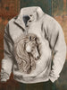 Férfi nyugati ló fej háromdimenziós nyomtatás állvány gallér cipzár flush kültéri pulóver