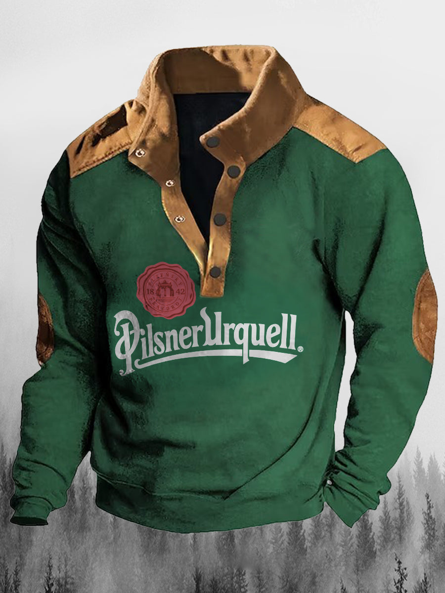 Sör szeszes italok kultúra nyomtatott lapel állvány gallér lapel gomb alkalmi laza pulóver
