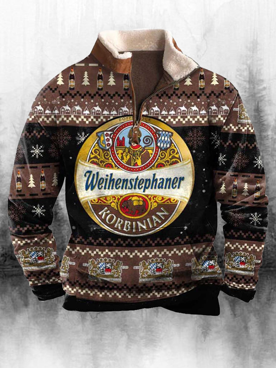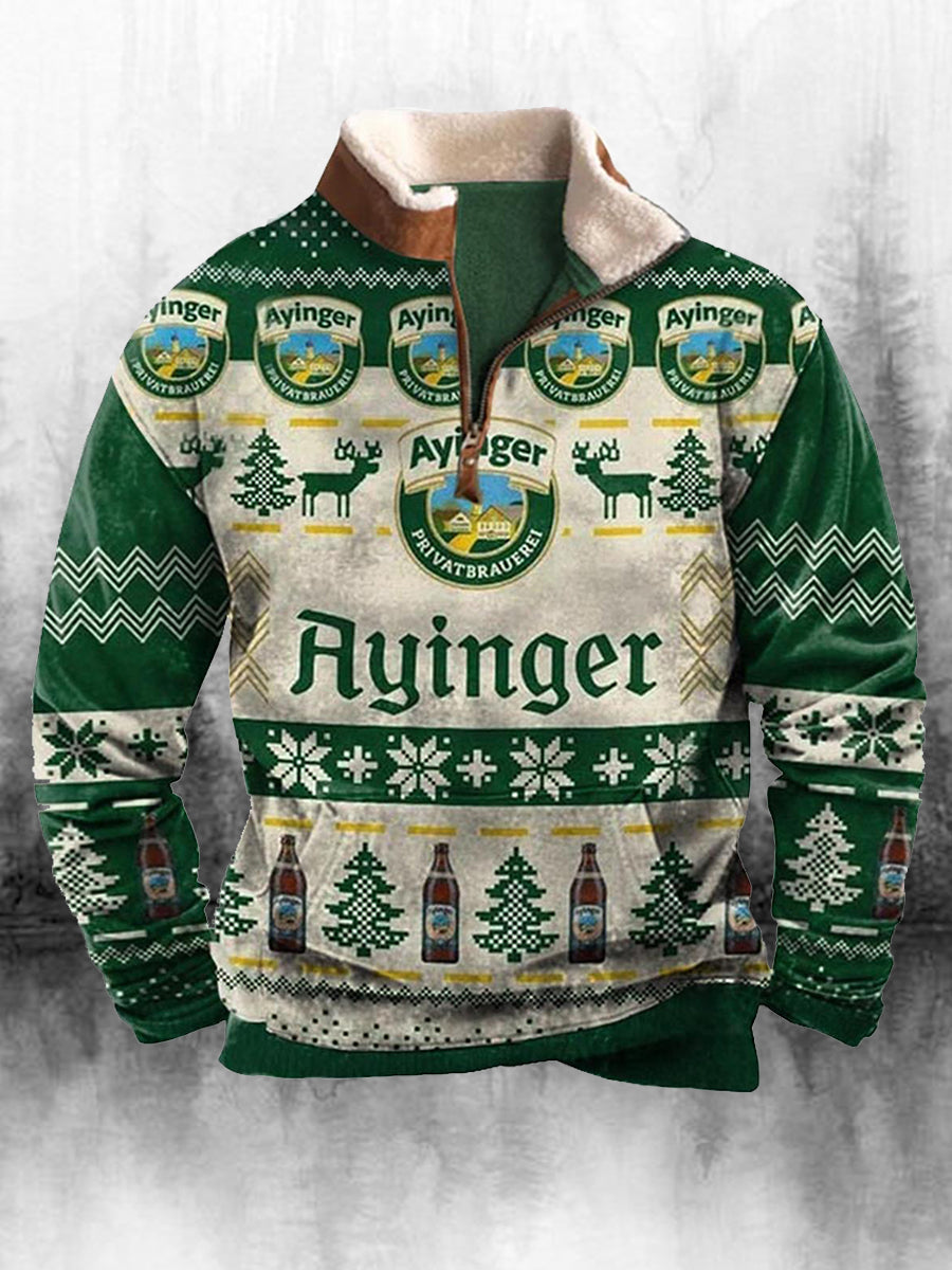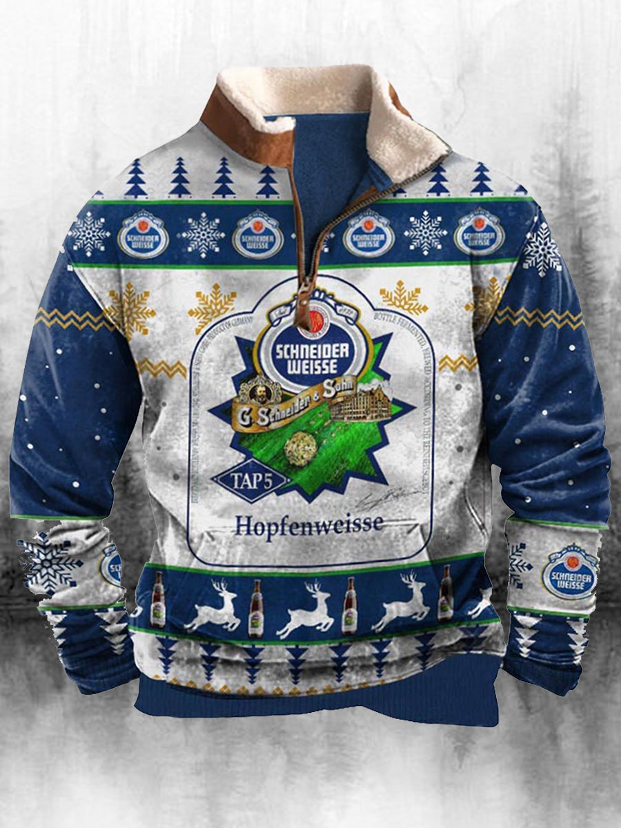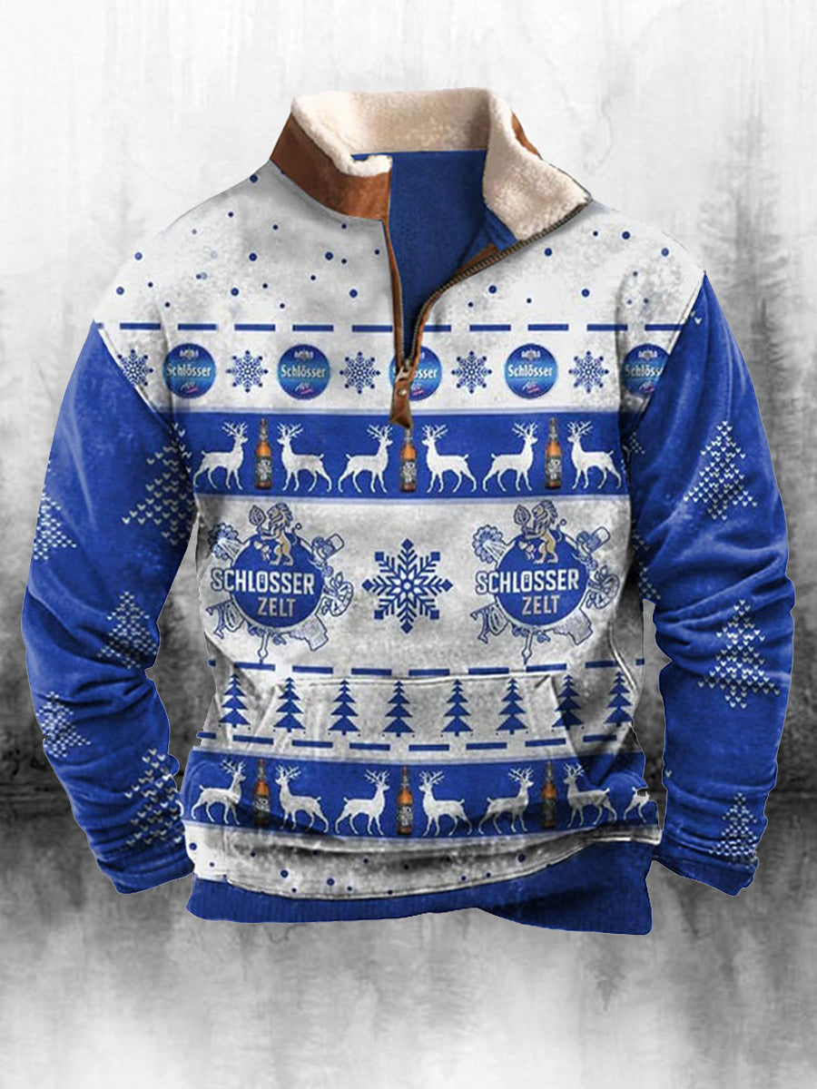 Férfi retro karácsonyi nyomtatás magas nyak fél cipzár hosszú ujjú felső