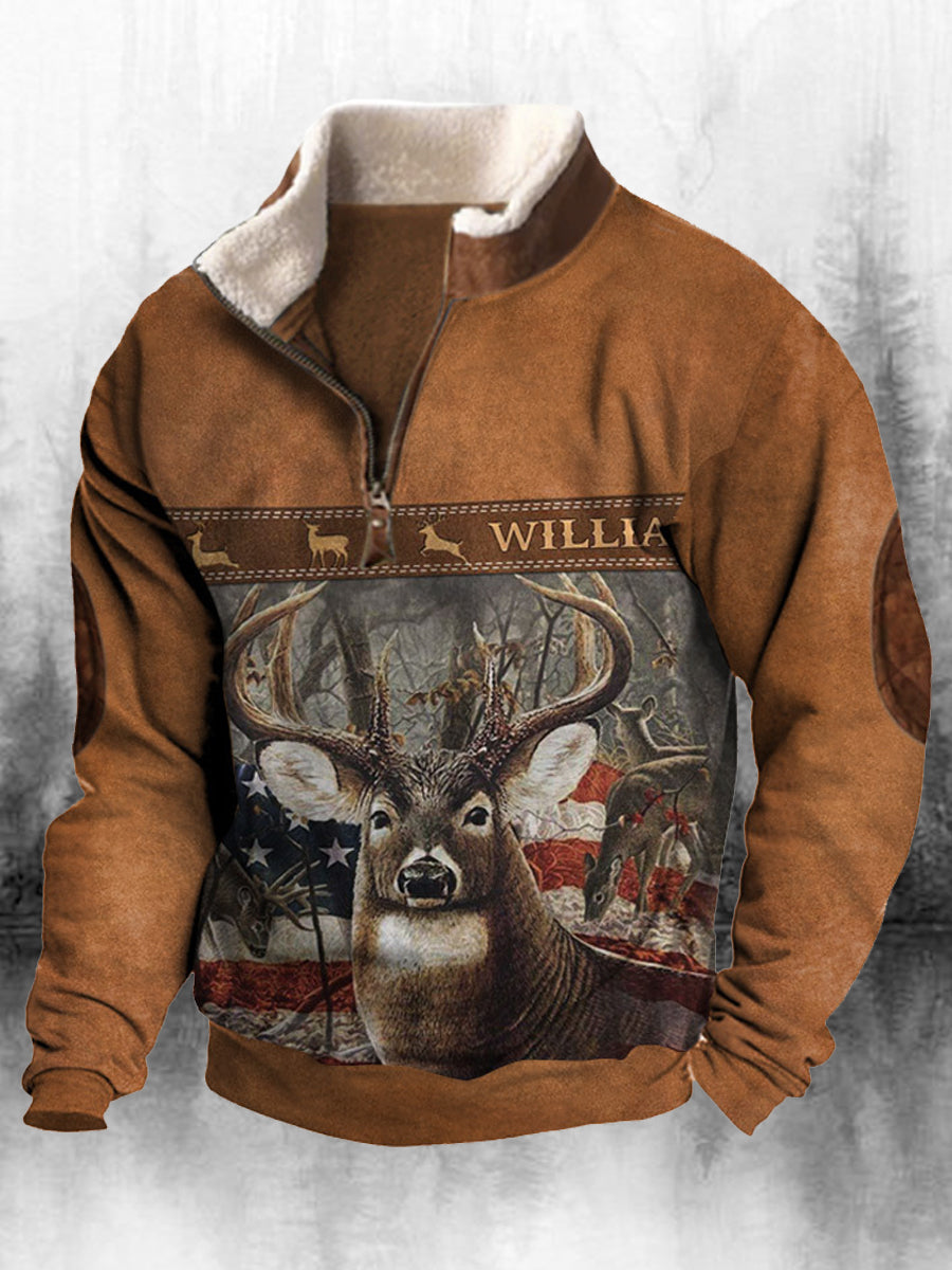 Férfi retro western nyomtatás magas nyak fél cipzár hosszú ujjú felső