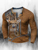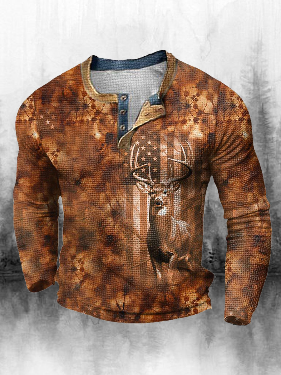 Férfi retro western nyomtatás turtleneck laza 3 gomb henley nyak hosszú ujjú felső