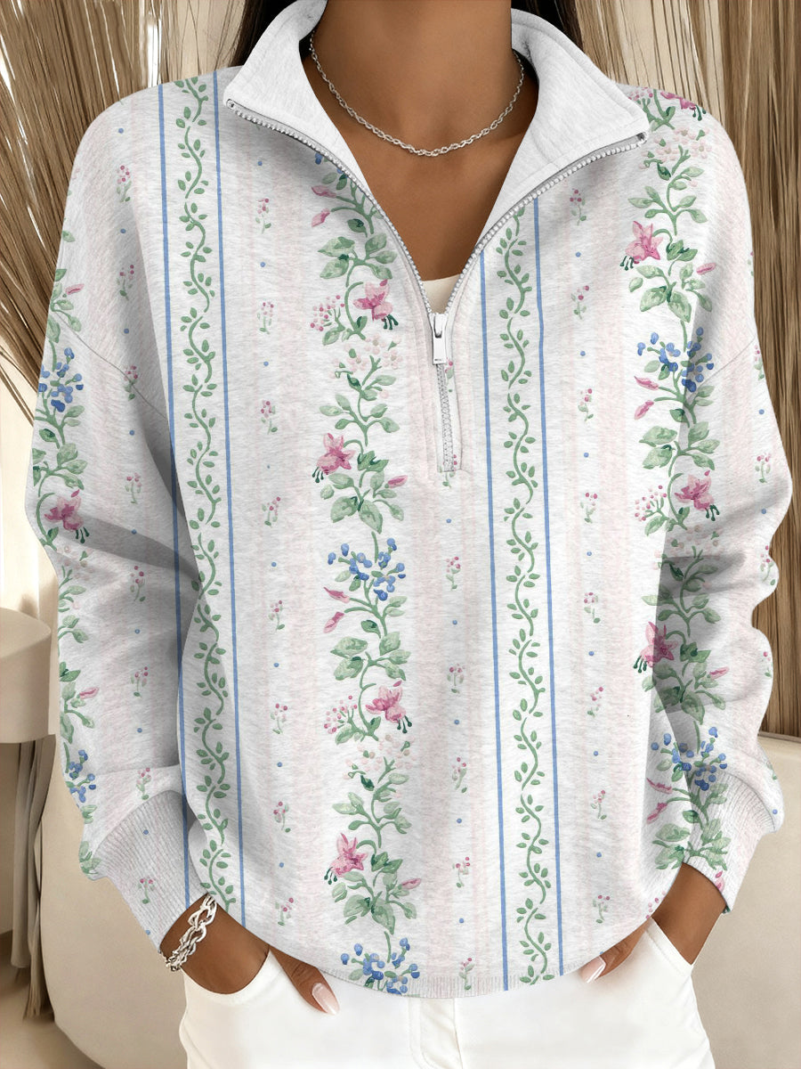 Női bájos virágos szőlő állvány-nyakörv pulóver