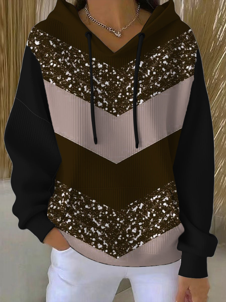 Női elegáns chevron minta barna & fekete kapucnis
