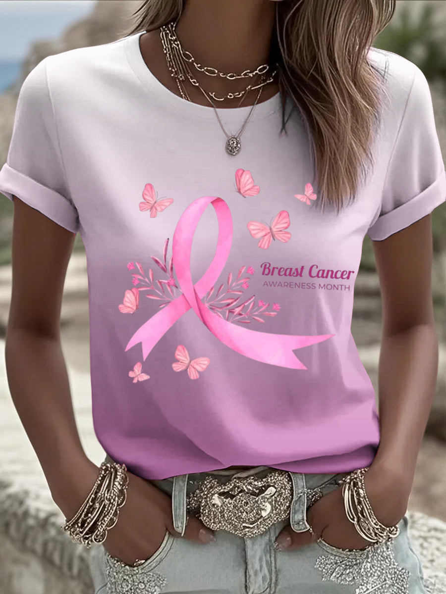 Női gradient rózsaszín szalag nyomtatott alkalmi rövid ujjú ing