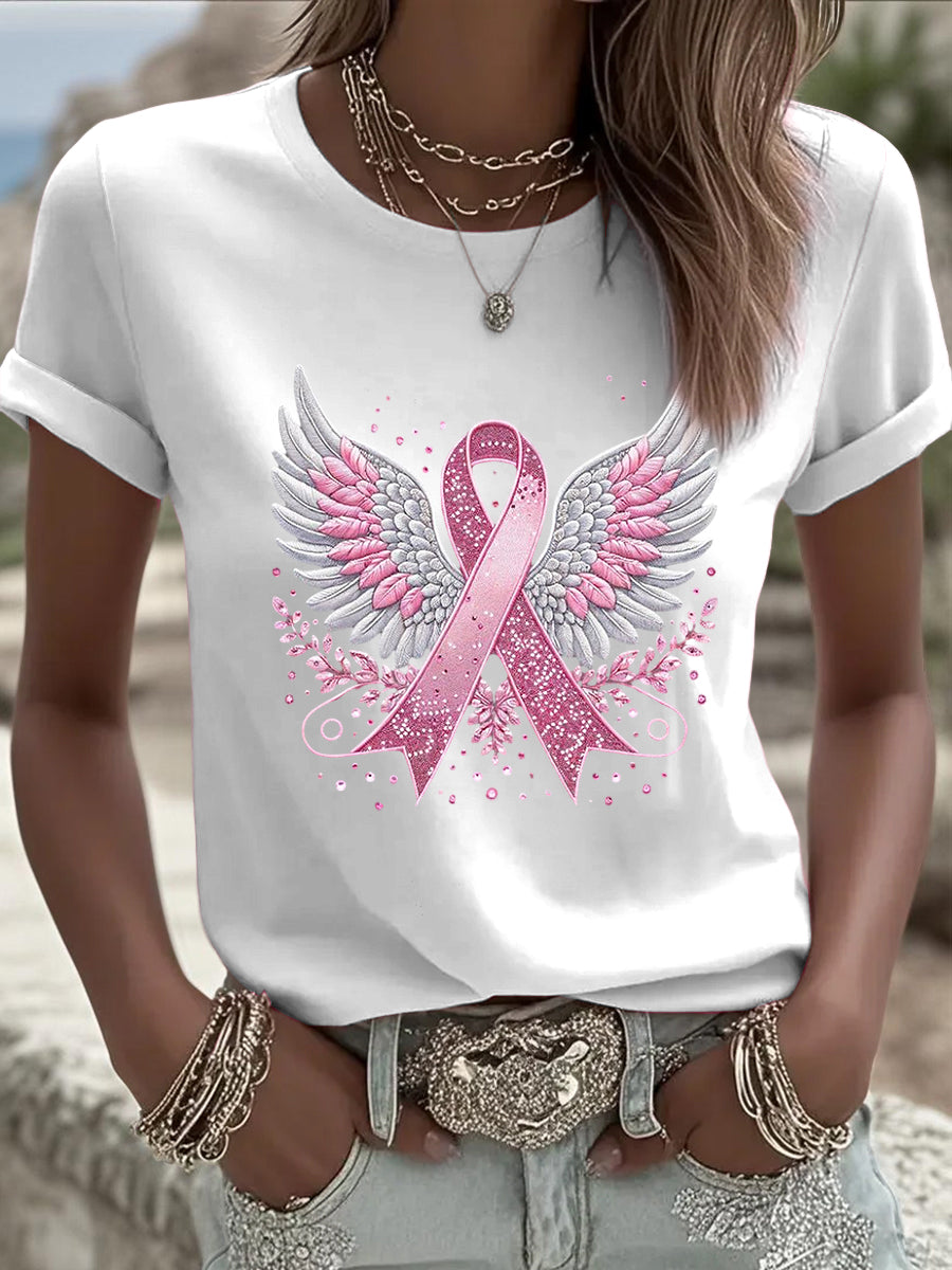 Női mellrák szalag szárnyak sequin nyomtatás alkalmi póló