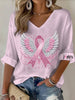 Női pillangó szalag nyomtatott v-nyak hosszú ujjú ing