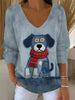 Női retro állat nyomtatás alkalmi hosszú ujjú top