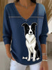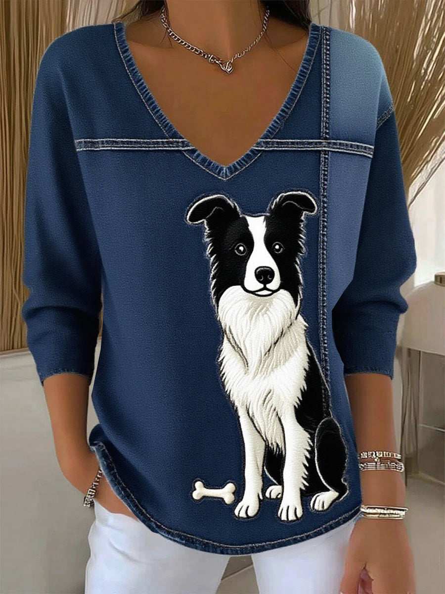 Női retro állat nyomtatás alkalmi hosszú ujjú top