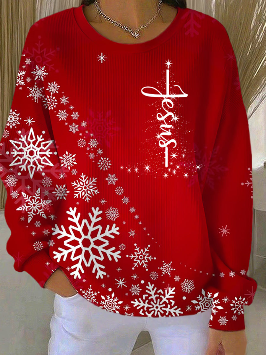 Női retro karácsonyi művészet nyomtatás alkalmi pulóver