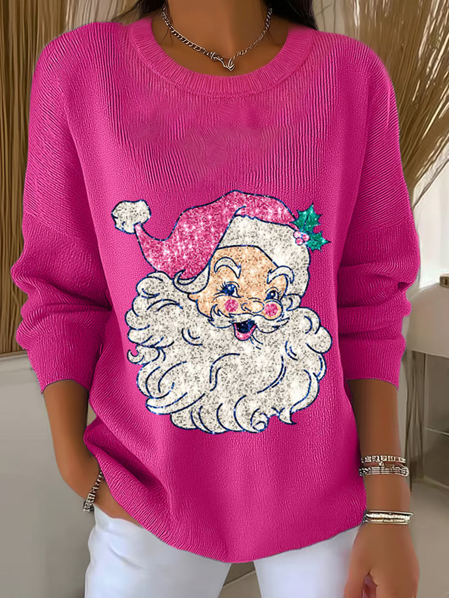 Női retro karácsonyi művészet nyomtatás alkalmi pulóver