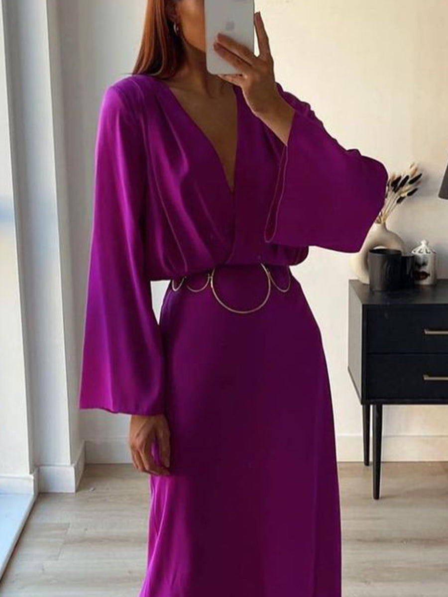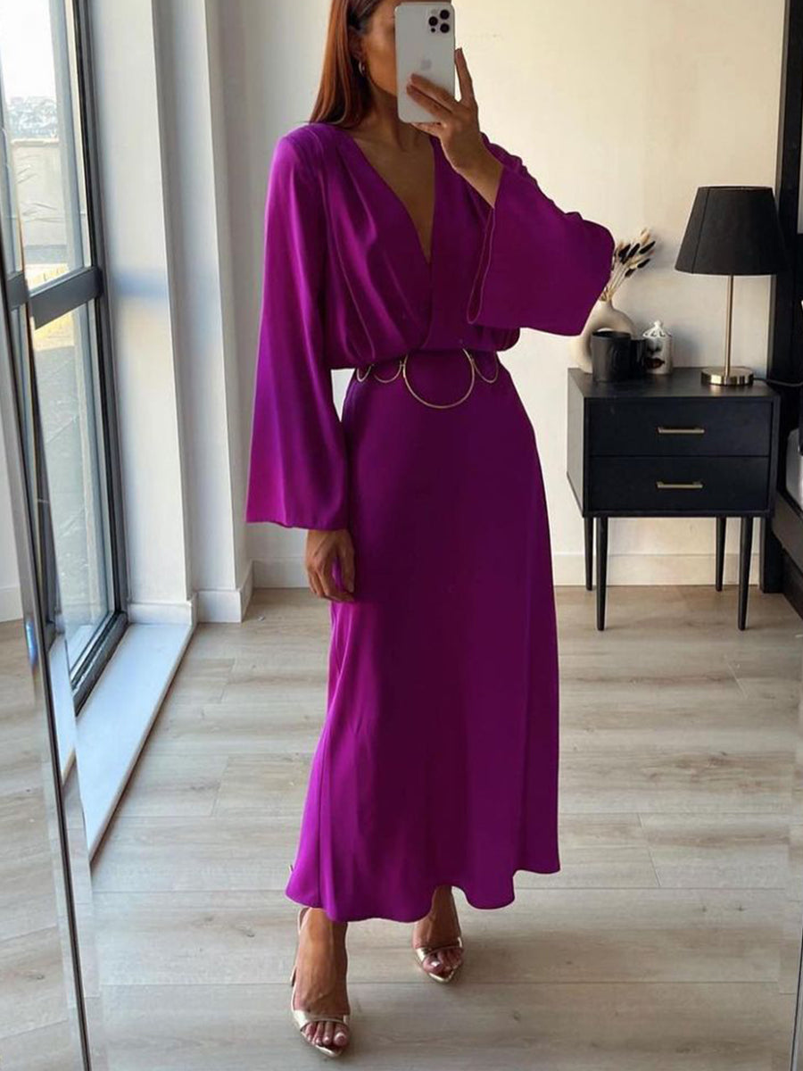Női retro lila derék v-nyak hosszú ruha