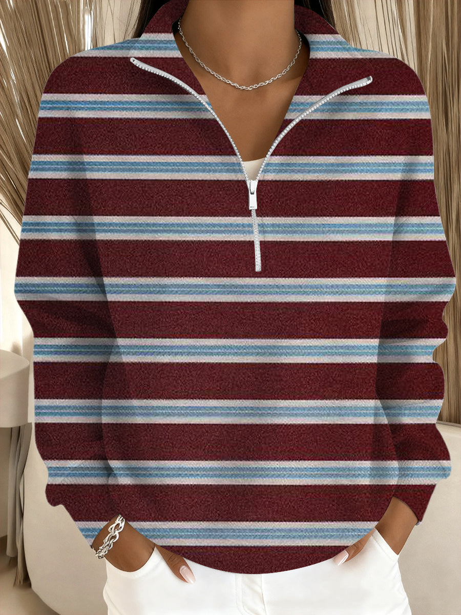 Női stílusos bordó csíkos állvány-nyakörv pulóver