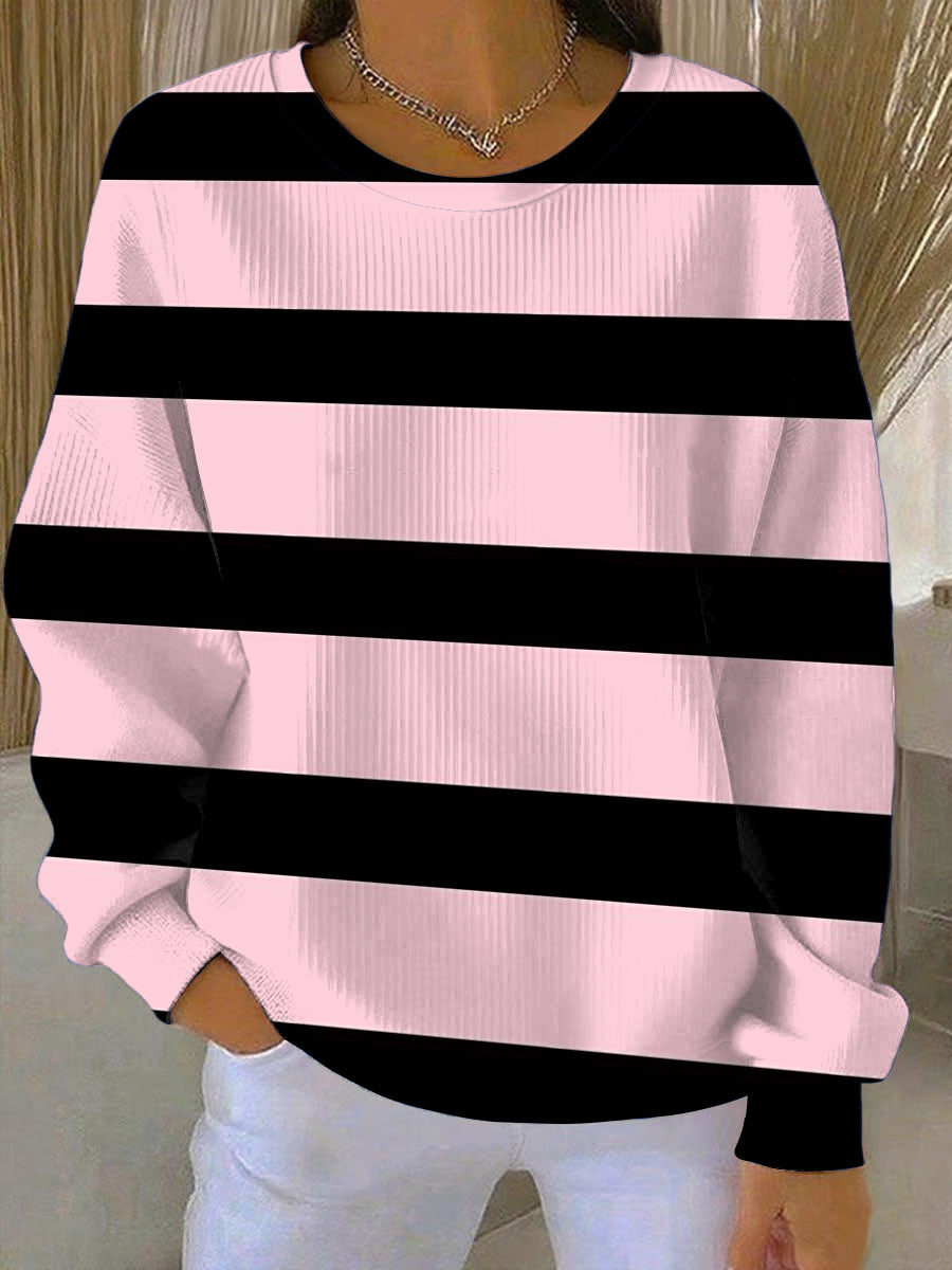 Női stílusos rózsaszín és fekete csíkos pulóver