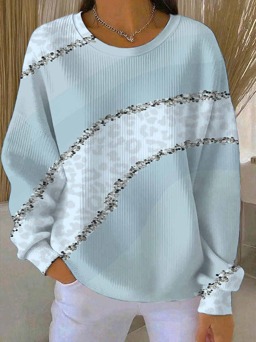 Női stílusos világoskék flitty csíkos pulóver