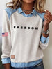 Női "szabadság nem szabad" amerikai zászló nyomtatás alkalmi hosszú ujjú top