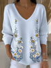 Női temperamentum stílus virágos retro hímzés v-nyak pulóver