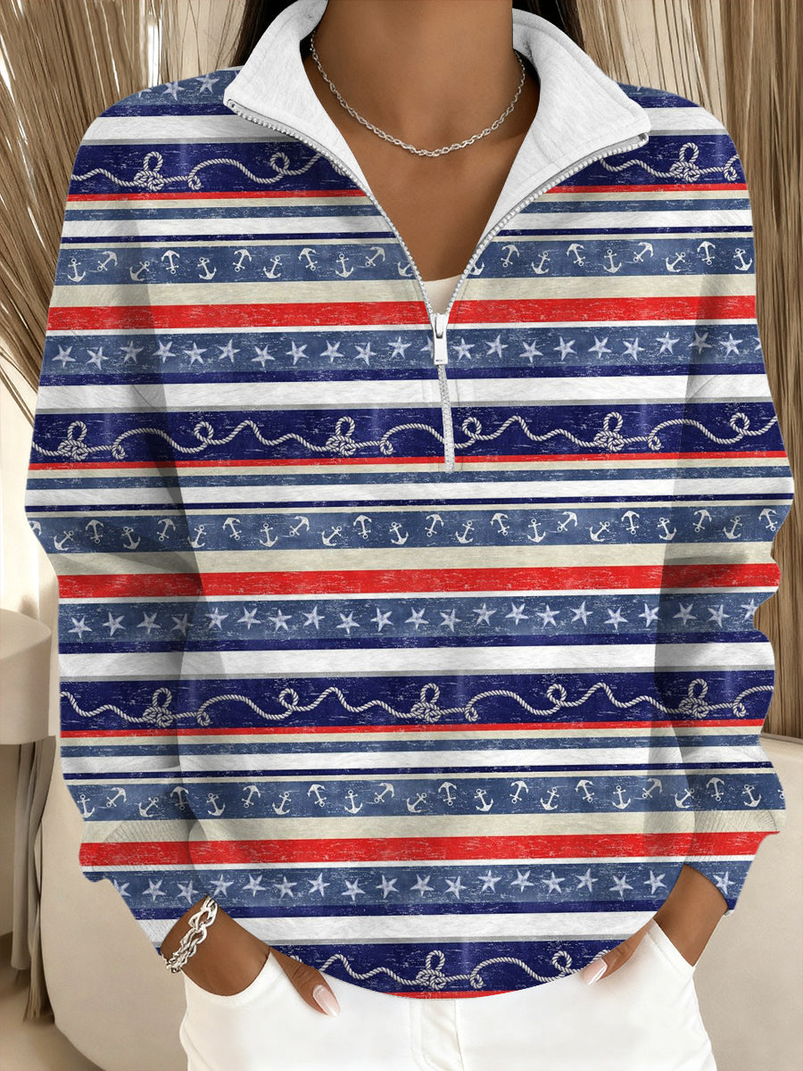 Női tengeri stílusú csíkos állványnyakörv pulóver