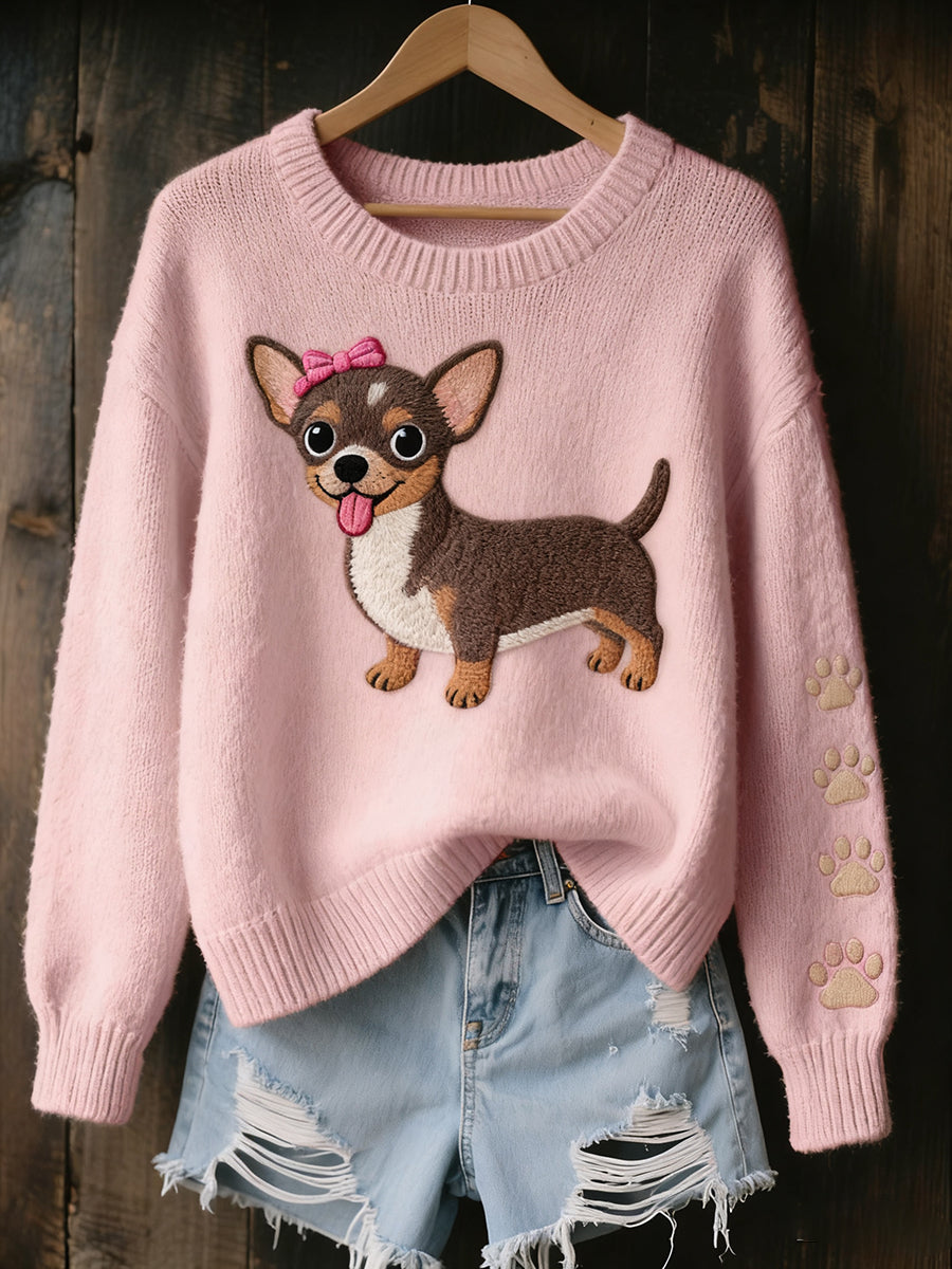 Női vintage art állat nyomtatás hangulatos kötött pulóver