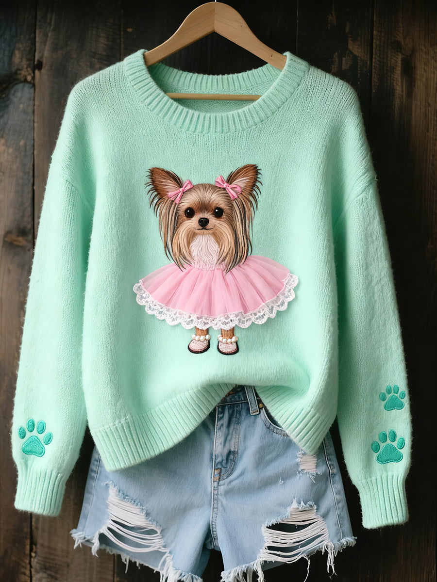 Női vintage art állat nyomtatás hangulatos kötött pulóver