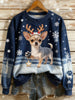 Női vintage karácsonyi állat művészet nyomtatás alkalmi kapucnis