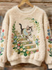 Női vintage karácsonyi állat művészet nyomtatás kényelmes alkalmi pulóver