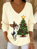Női vintage karácsonyi állat nyomtatás alkalmi hosszú ujjú top