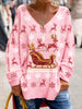 Női vintage karácsonyi művészet nyomtatás hangulatos kötött top