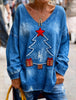 Női vintage karácsonyi művészet nyomtatás hangulatos kötött top