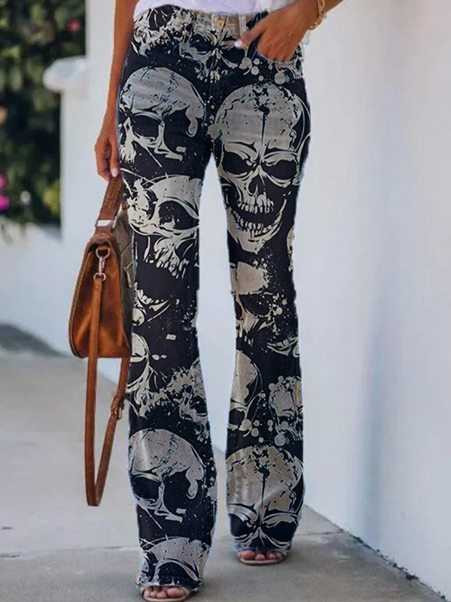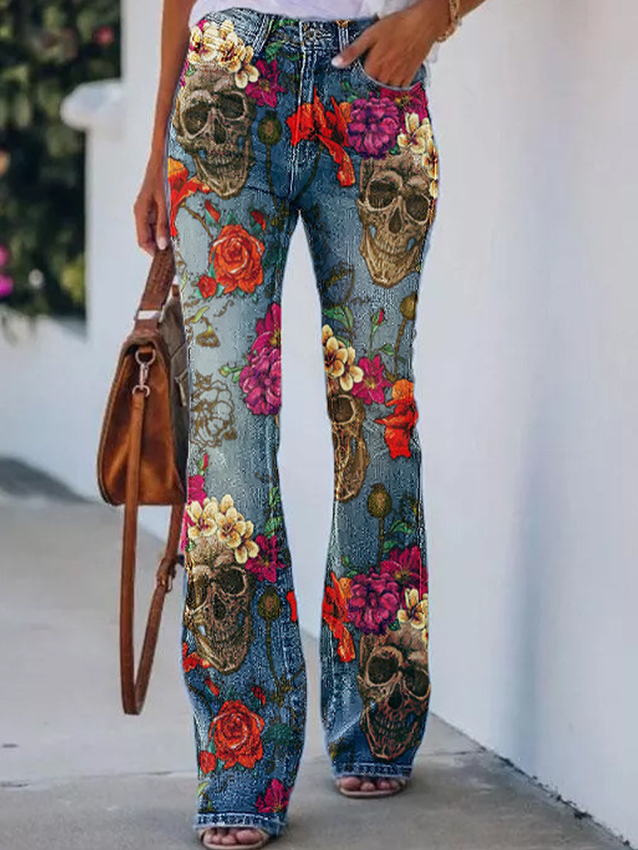 Női vintage nyomtatott faux farmer alkalmi nadrág