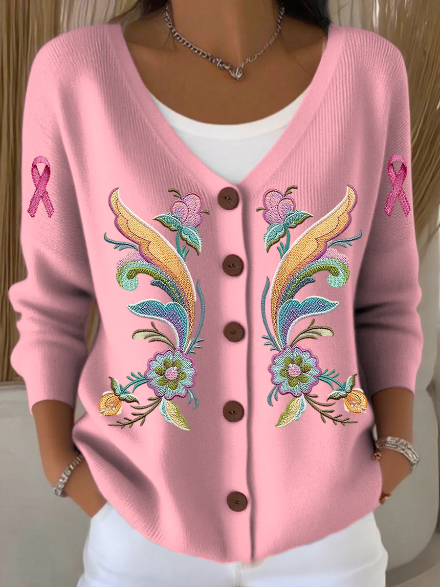 Női vintage szimmetrikus virágos v-nyak kötött kardigán