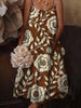 Női virágos művészet nyomtatás zseb v-nyak középső ujjú ruha
