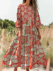 Retro boho art print vintage elegáns kerek nyak pamut hosszú ujjú midi ruha